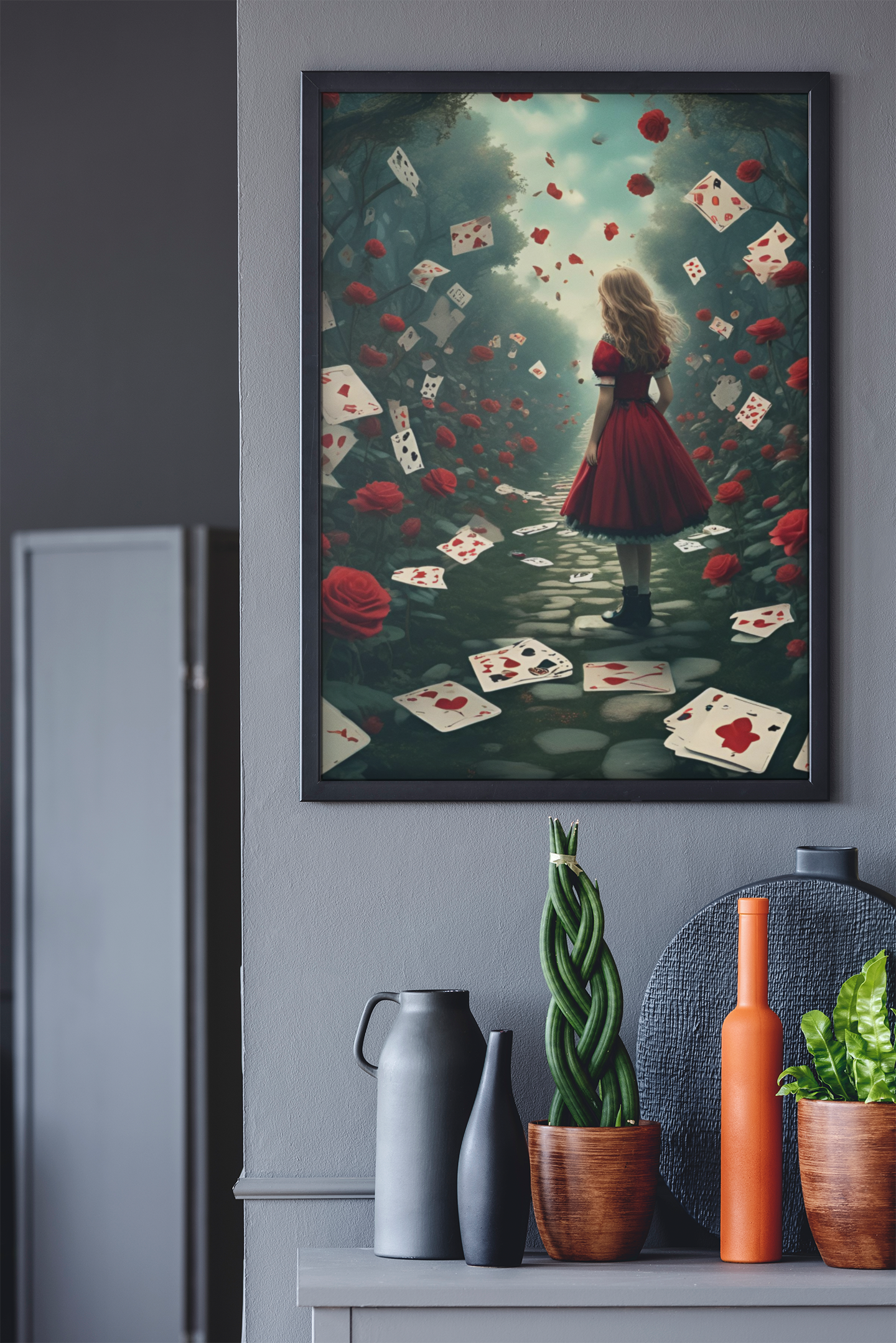 Tumble down not into whimsy but into shadow. In this eerie reimagining of a Dreamland, twisted trees whisper secrets, and echo's of laughter that doesn’t quite sound right. Walk a path stitched with thorns and riddles, curiosity pulling you deeper into a land where nothing is safe and everything is enchanted. Roses soaked in crimson, and time that ticks backward in a clockwork forest draped in mist.