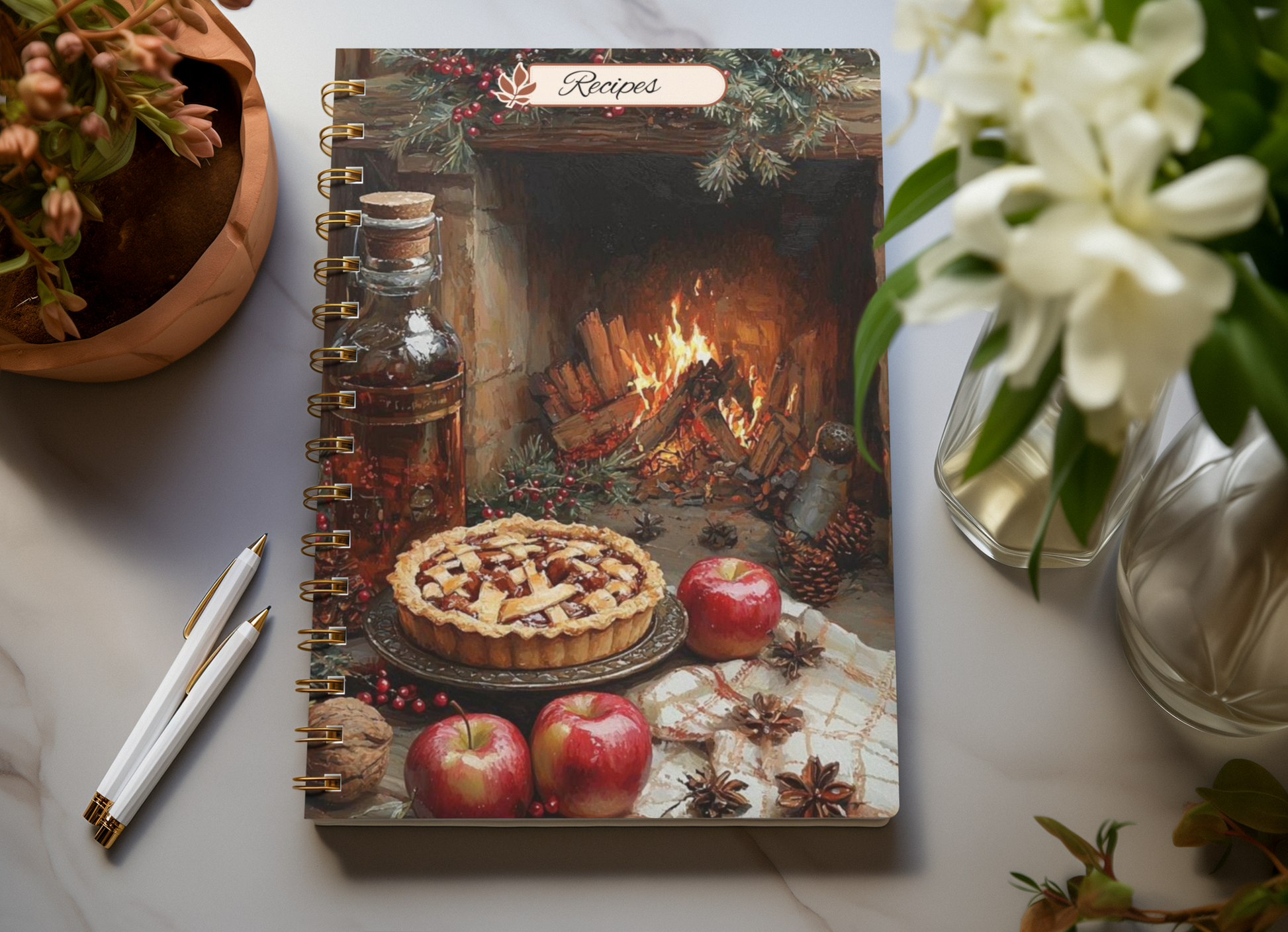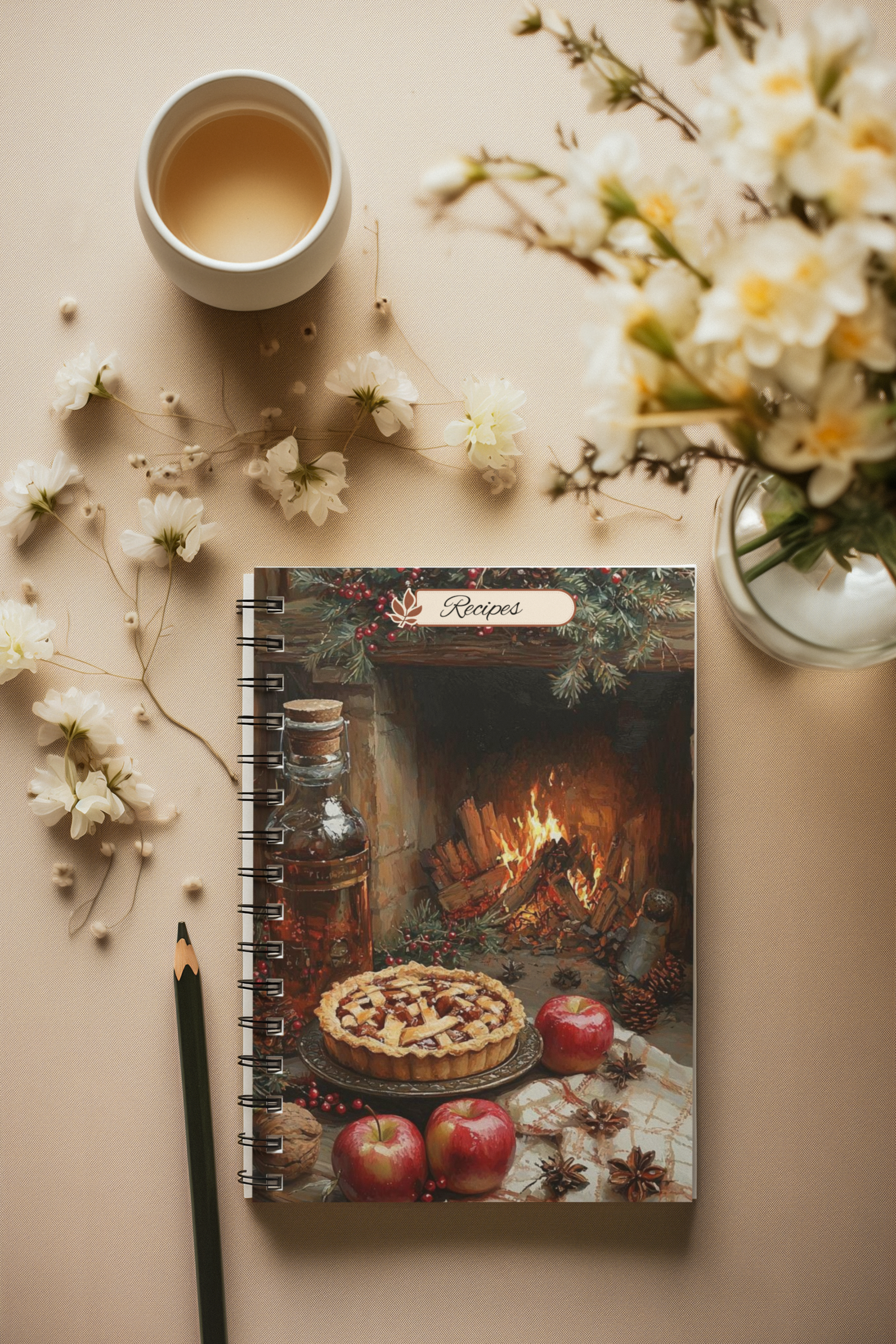 The kitchen is filled with the rich, golden scent of cinnamon and baked apples as a freshly made pie rests on the counter, steam curling into the crisp autumn air. Around it, a scatter of ruby-red apples and golden fall leaves hint at the harvest just gathered. The flaky crust glistens with sugar, still warm from the oven, inviting you to slow down, savor the season, and take a bite of something truly comforting.
