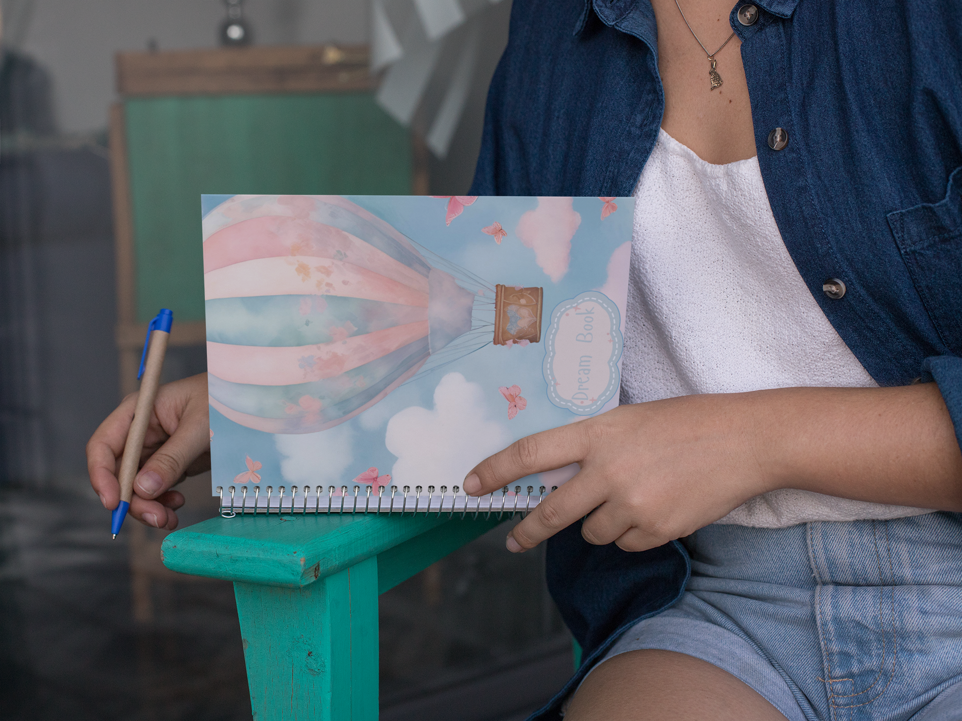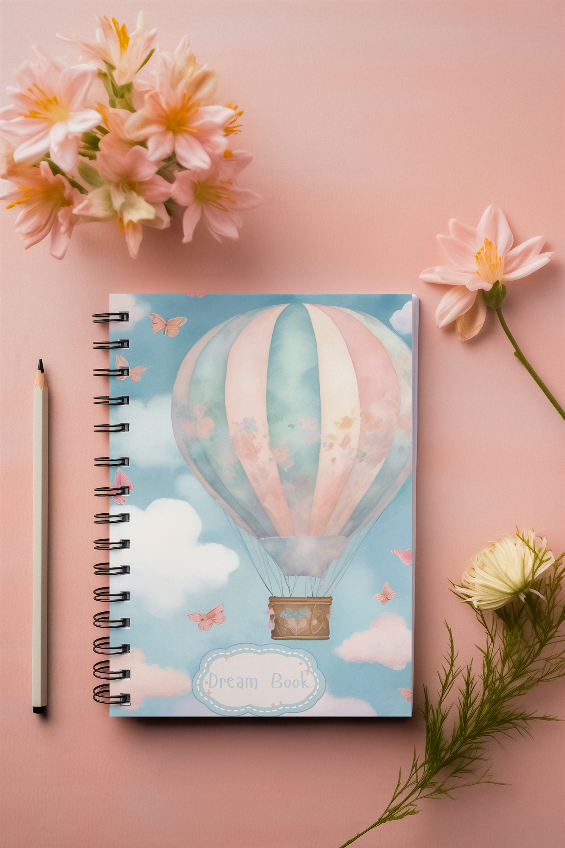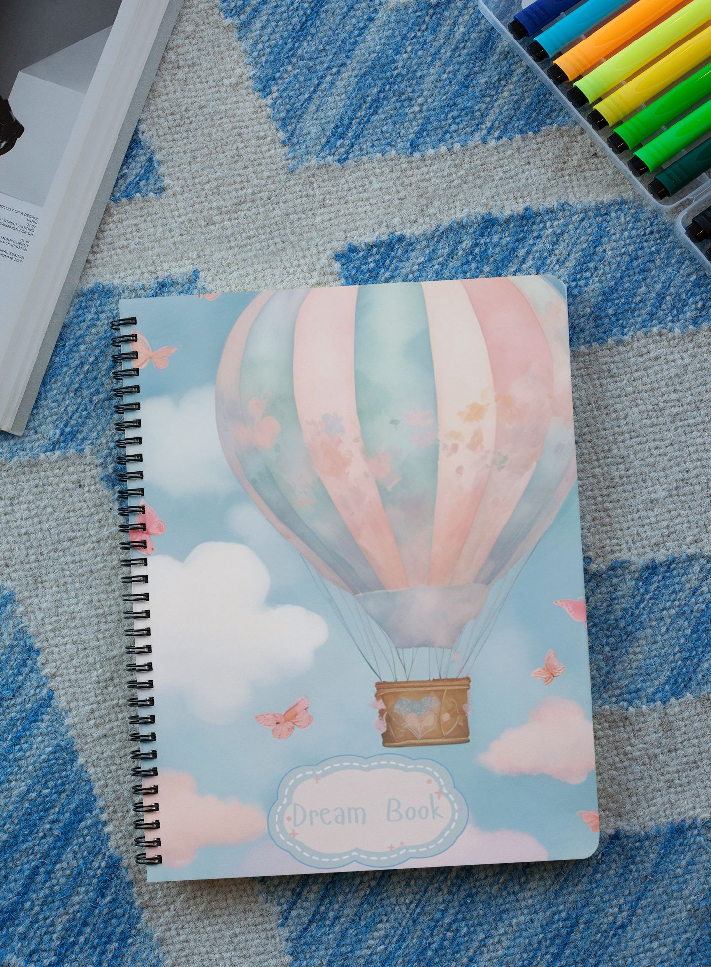 Drift into daydreams with this Dreamy Hot Air Balloon Notebook, where a pastel balloon floats effortlessly through a sky of wispy clouds and delicate butterflies. The air feels light, the world quiet, as if time itself pauses to watch you write. Every page is a soft breeze, carrying your thoughts higher, like wishes tied to wings. Whether you're capturing moonlit musings or sun-drenched scribbles, this notebook is your own little sky endlessly open, endlessly yours.
