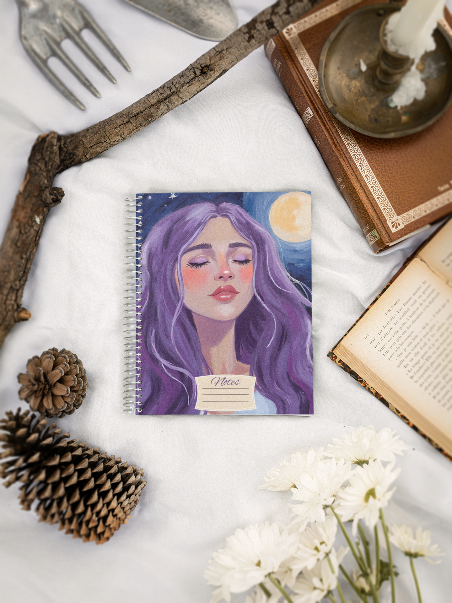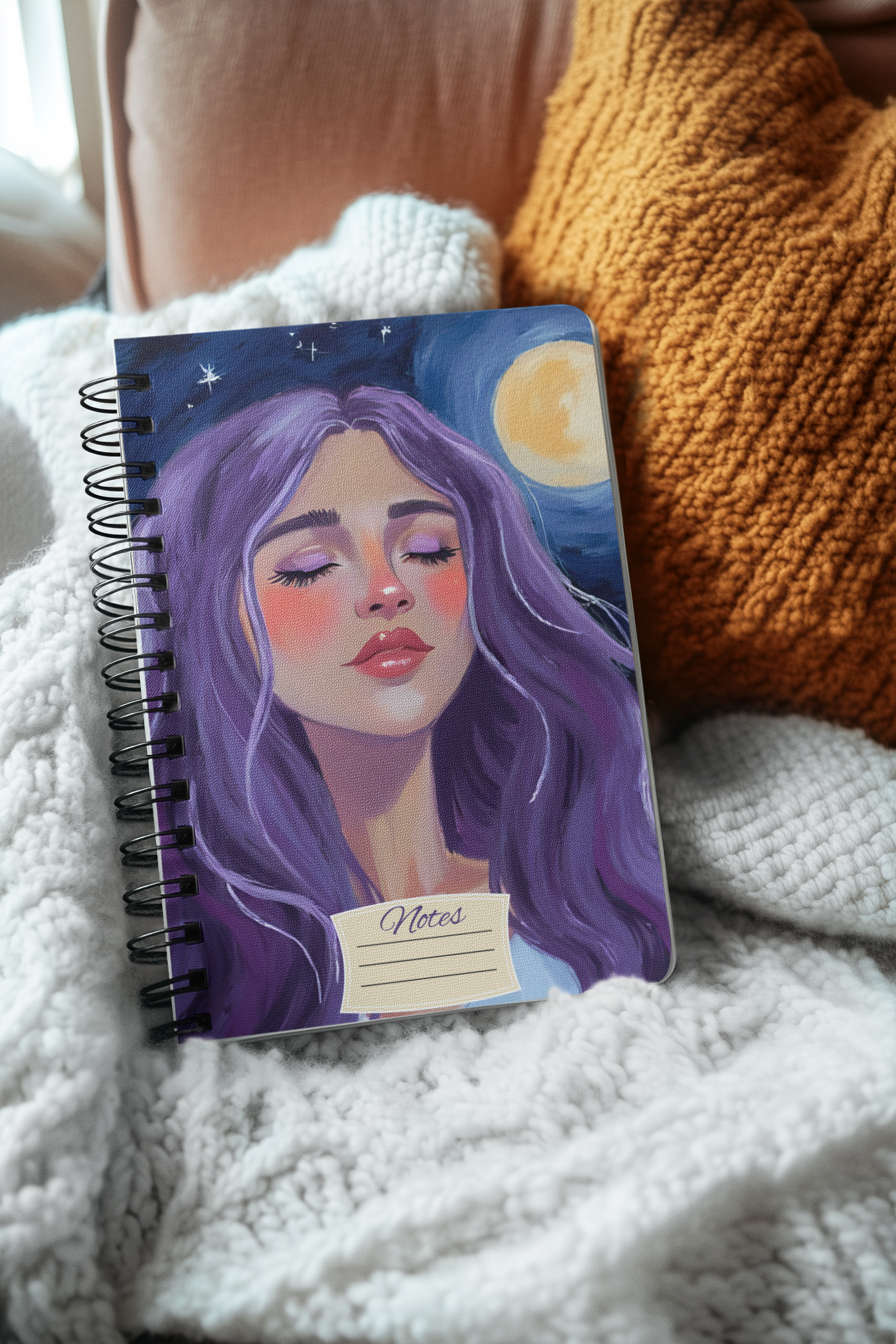 Step into the cosmos with this ethereal Goddess Spiral Notebook, where the stars write poetry and the moon guards your secrets. Graced with a divine figure crowned in flowing purple hair, she glows beneath a sky dusted in stardust, moons, and shimmering constellations. Her gaze is timeless, her presence serene muse for your most magical thoughts. Whether you're journaling dreams, casting intentions, or sketching your own universe, this notebook holds a galaxy of inspiration between every line.
