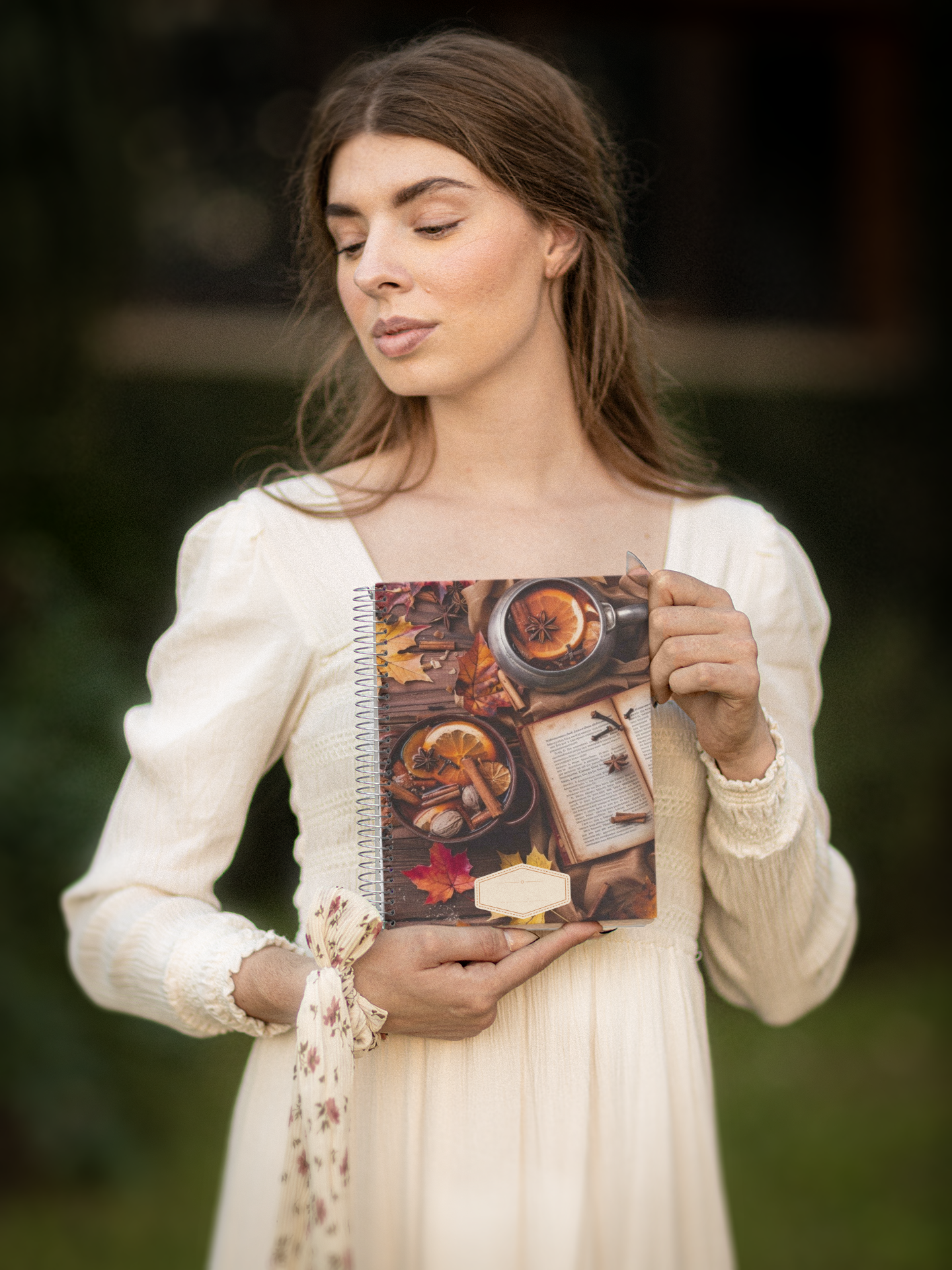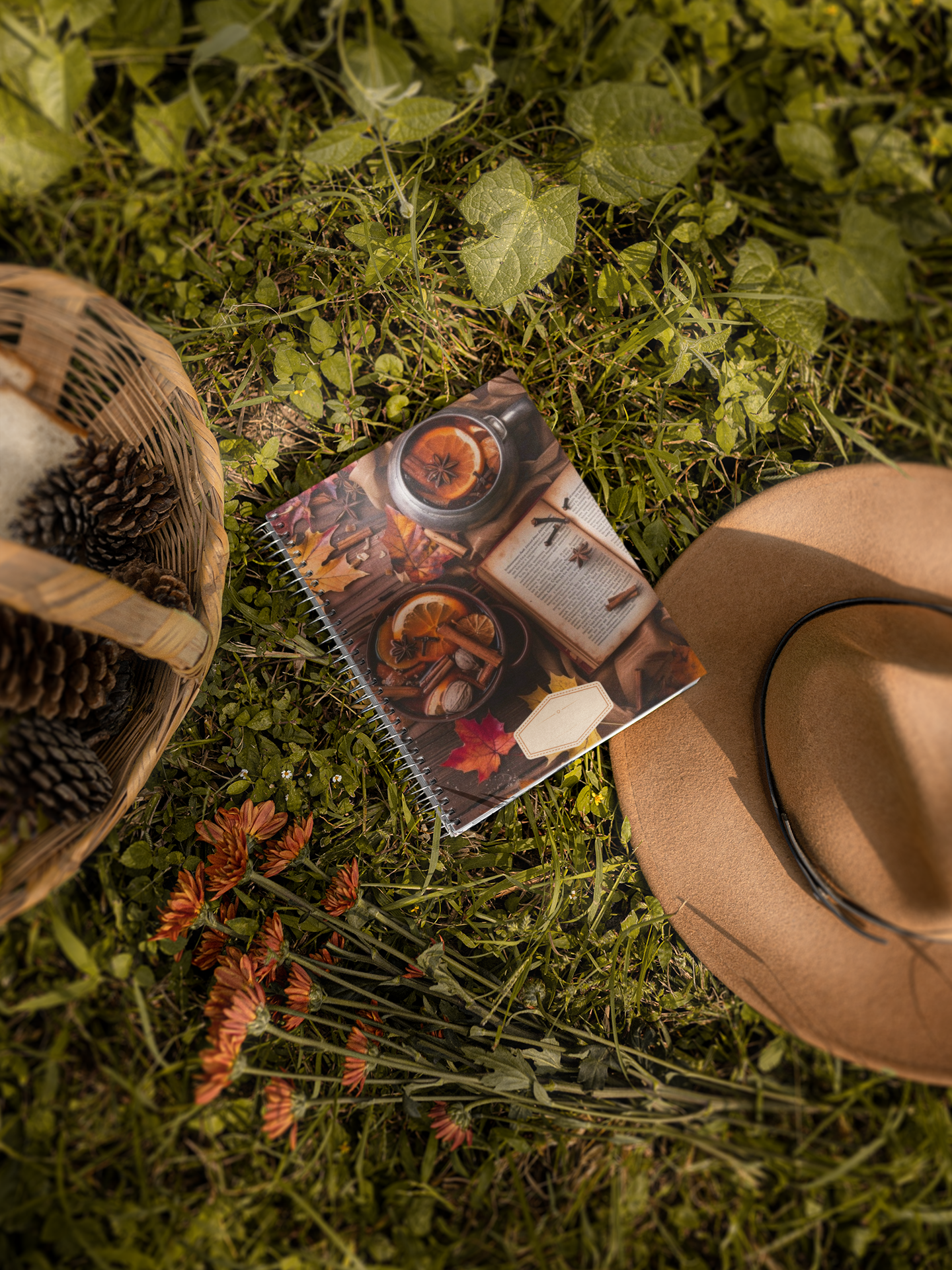 Wrapped in the golden glow of fall, this cozy notebook captures the heart of the season where crisp leaves crunch underfoot and warm cider steams in your hands. Adorned with rich autumn foliage and hints of cinnamon-kissed charm, it’s the perfect space for sweater-weather journaling, to-do lists, or dreamy reflections. Whether you're jotting beside a window or under a maple tree, every page feels like a sip of comfort and a whisper of falling leaves.