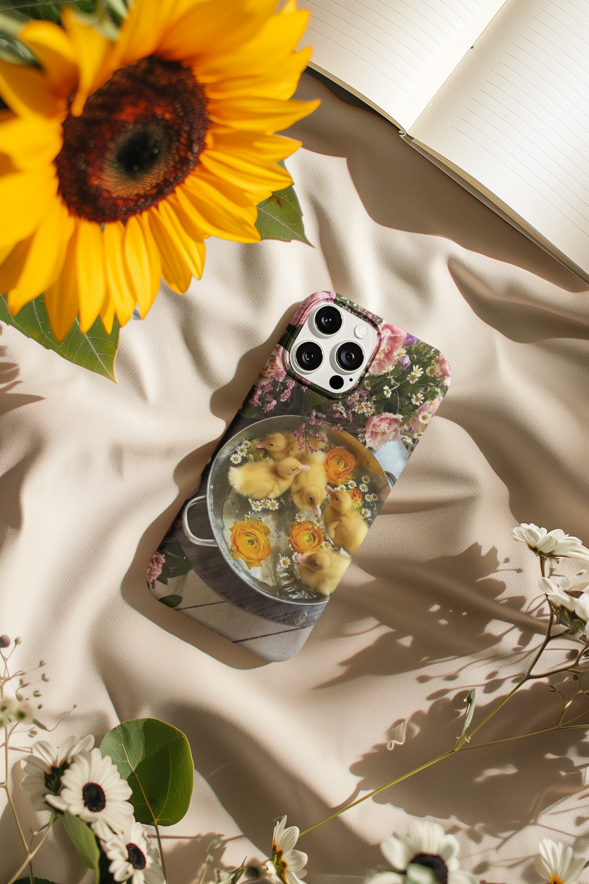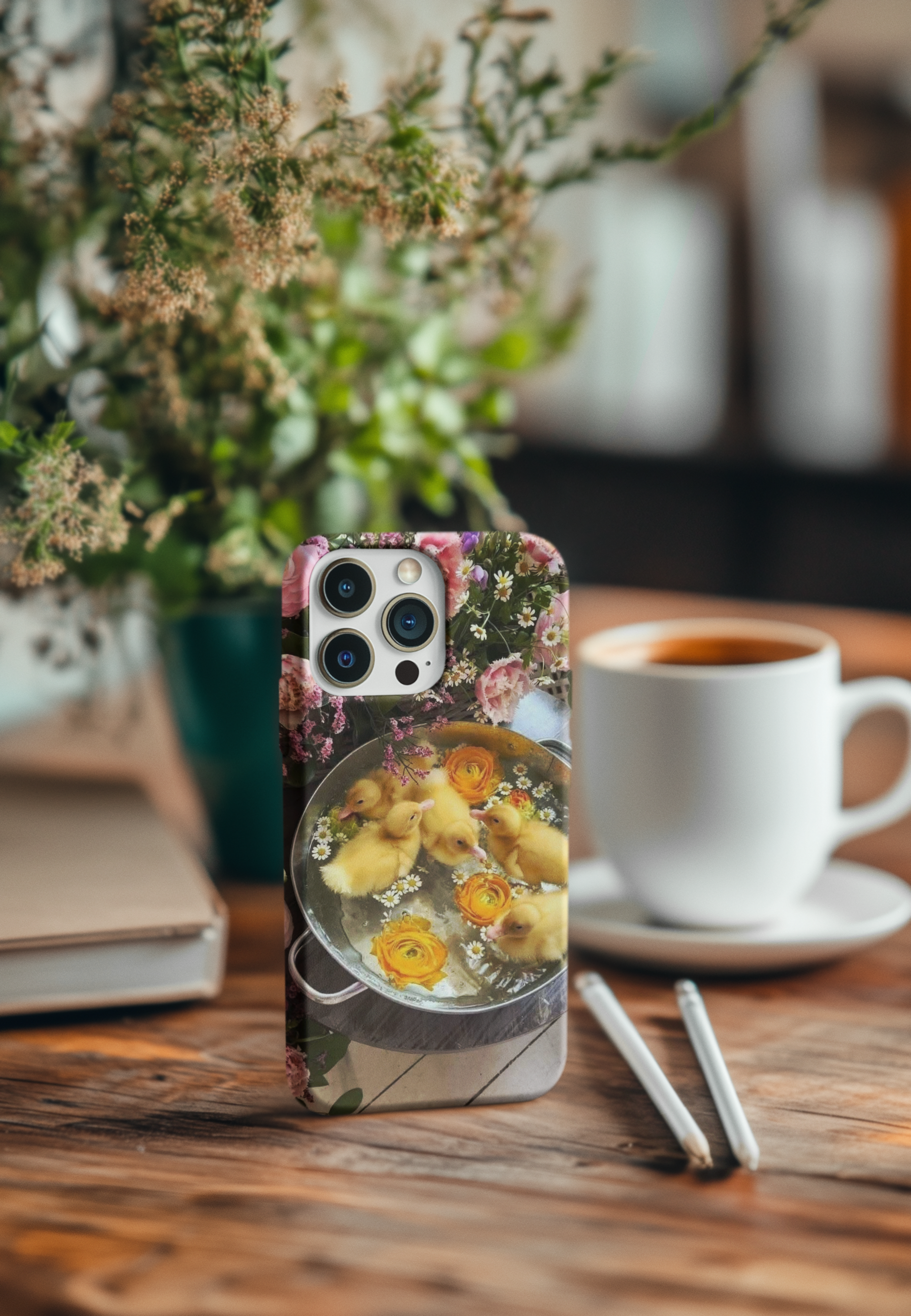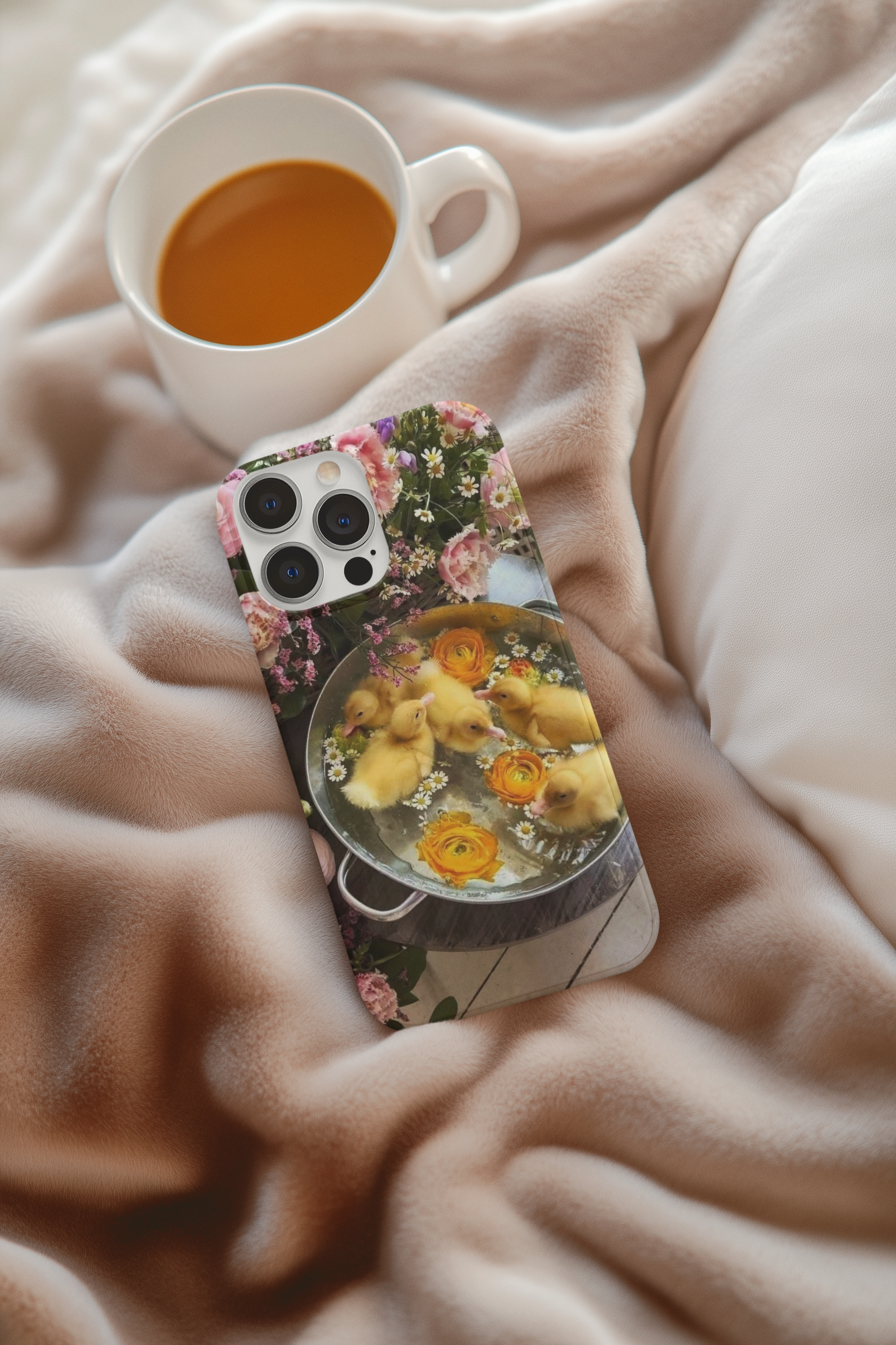 Whimsy meets charm in this darling phone case featuring fluffy yellow ducklings splashing in a vintage iron pot, surrounded by soft, blooming flowers. It’s a dreamy little world of sunshine and sweetness like springtime in your pocket. Whether you're a nature lover, a duck enthusiast, or just love a little whimsy, this case brings cozy cuteness to your fingertips.