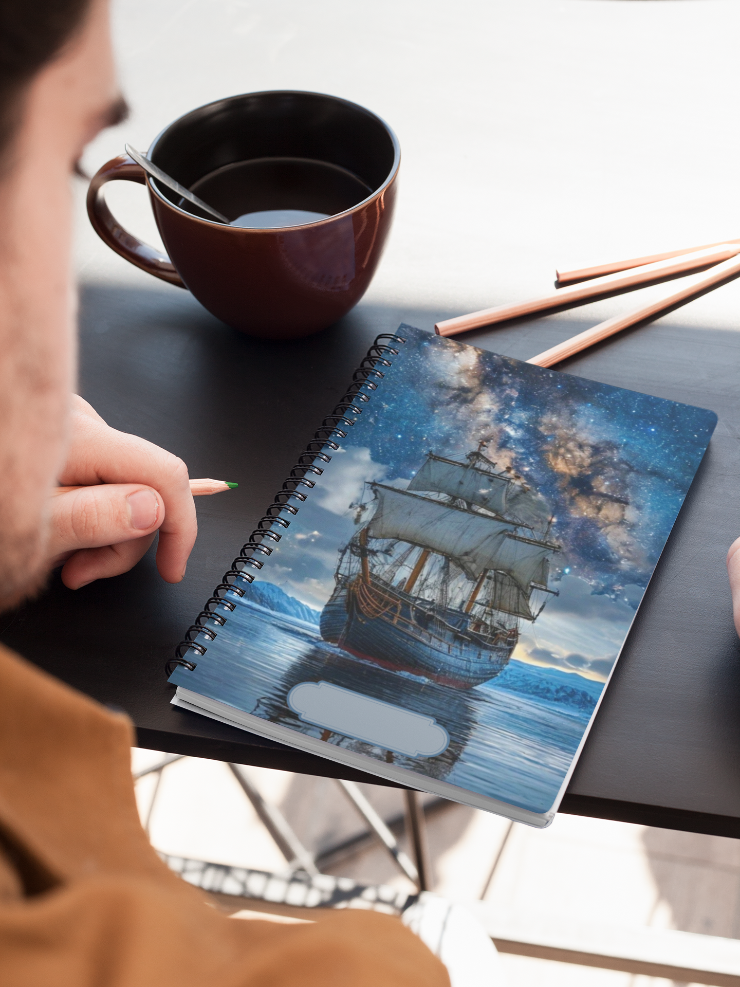 Under a sky brushed with stars and spirals of shimmering light, a quiet boat glides across glass-still waters its reflection a perfect echo beneath the heavens. The sea holds its breath, soft and infinite, as constellations ripple gently across the surface. Each wave is a whisper, each star a story, and the boat drifts between them like a dream set adrift in the night. It’s a moment suspended in starlight, where time melts into moonlight and wonder.