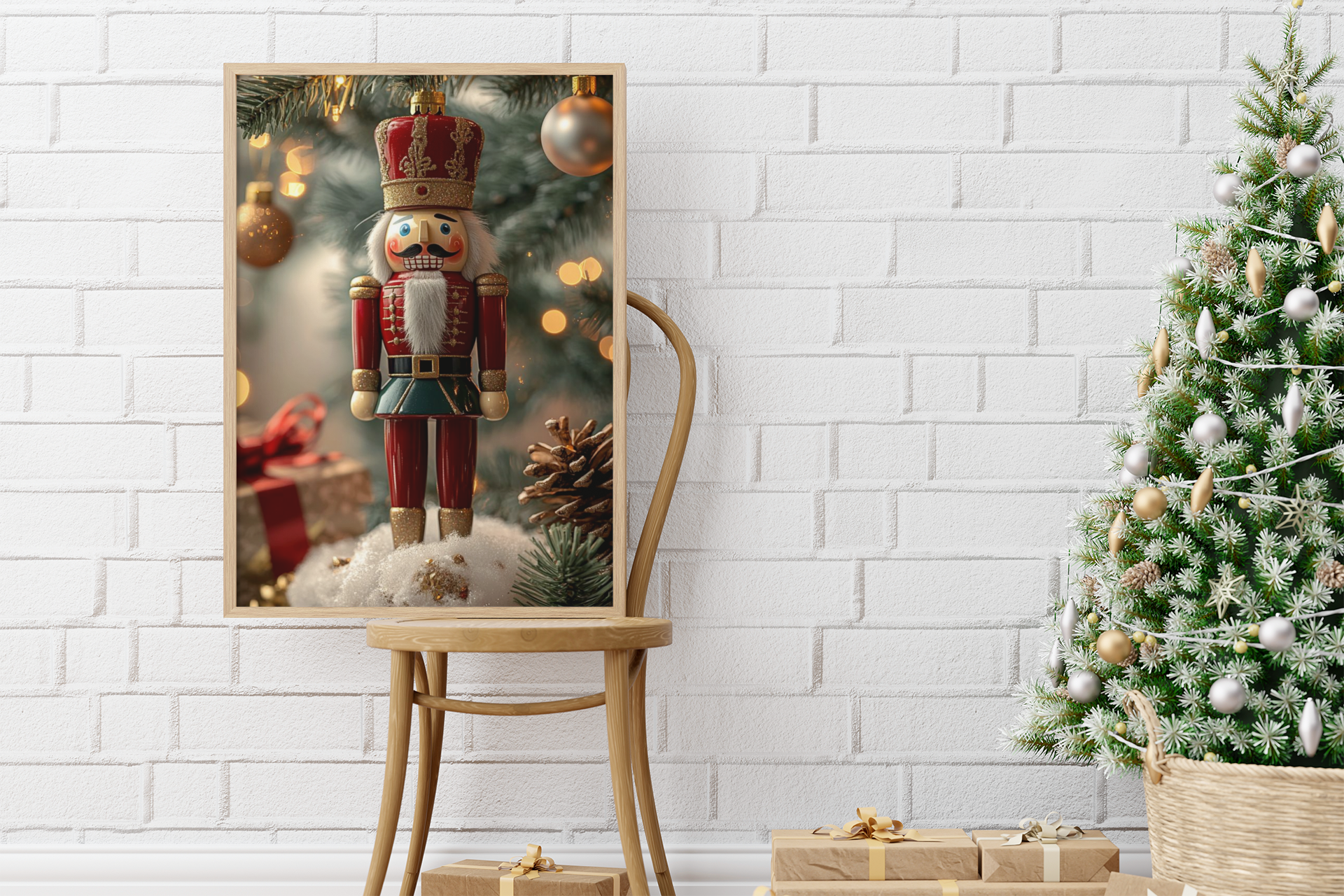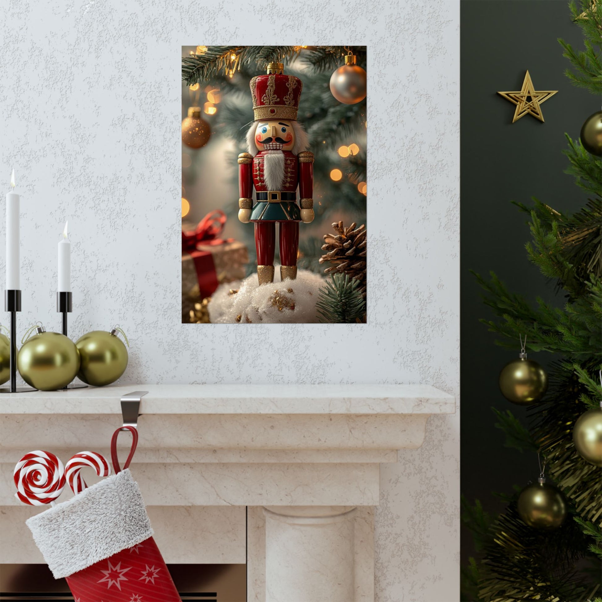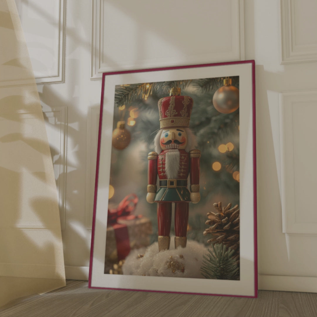Standing proud in his classic uniform, this festive toy soldier nutcracker brings timeless holiday tradition to life. With bright, cheerful colors and a glimmer of gold, he’s ready to guard the magic of the season against a backdrop of twinkling lights and merry cheer. Full of nostalgic charm and seasonal spirit, this canvas captures the heart of Christmas past where every detail feels like a page from a storybook and the holidays march in with joy.