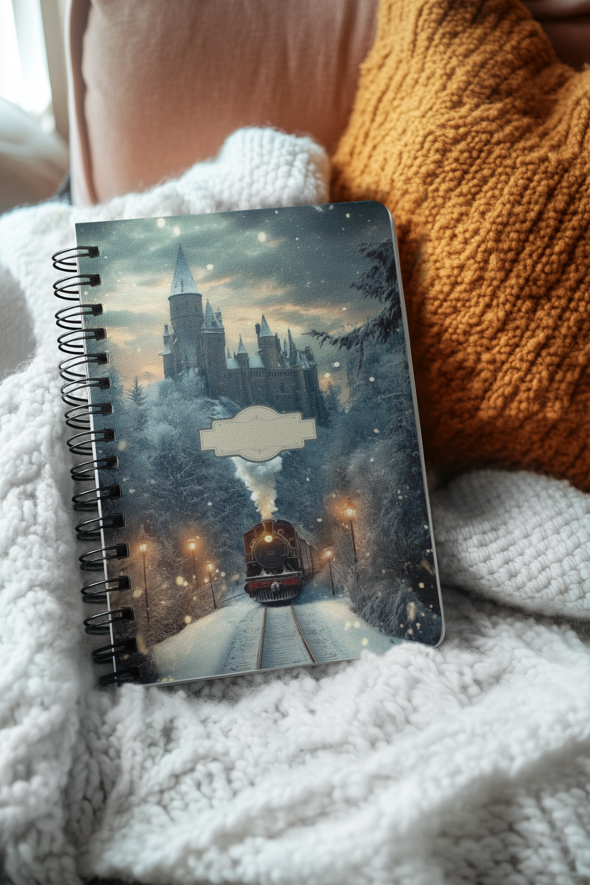 Chugging through a blanket of fresh snow, the Christmas train winds its away from a towering black castle that looms against the winter sky. Smoke curls from the engine like whispers in the cold, while glowing windows promise warmth and wonder inside. Glittering snowflakes dance in its wake as the train carries holiday dreams through a landscape where magic and mystery meet. It’s a journey wrapped in frost, fueled by festive spirit, and headed straight for the heart of a Christmas unlike any other.