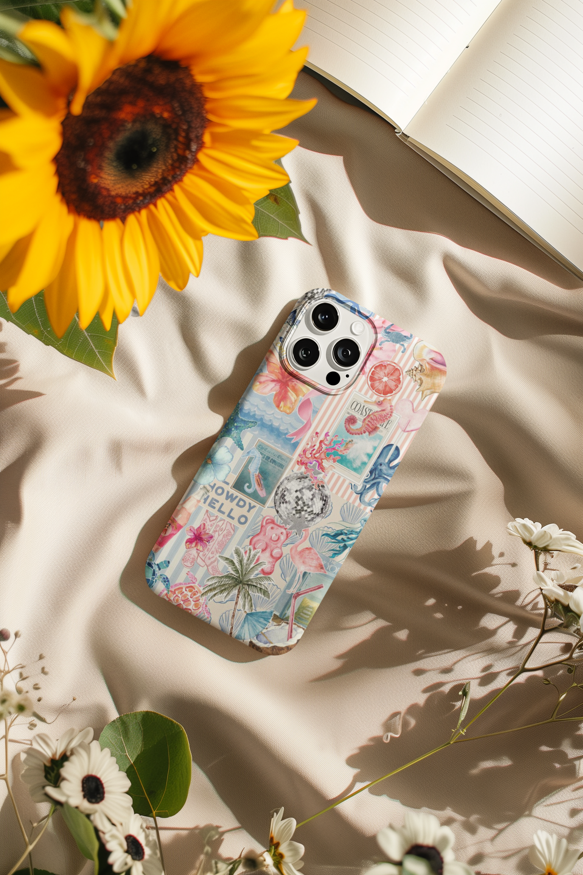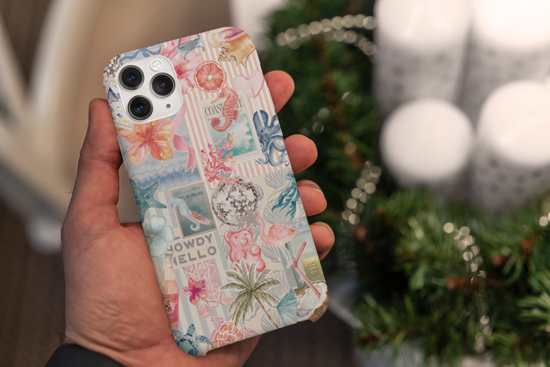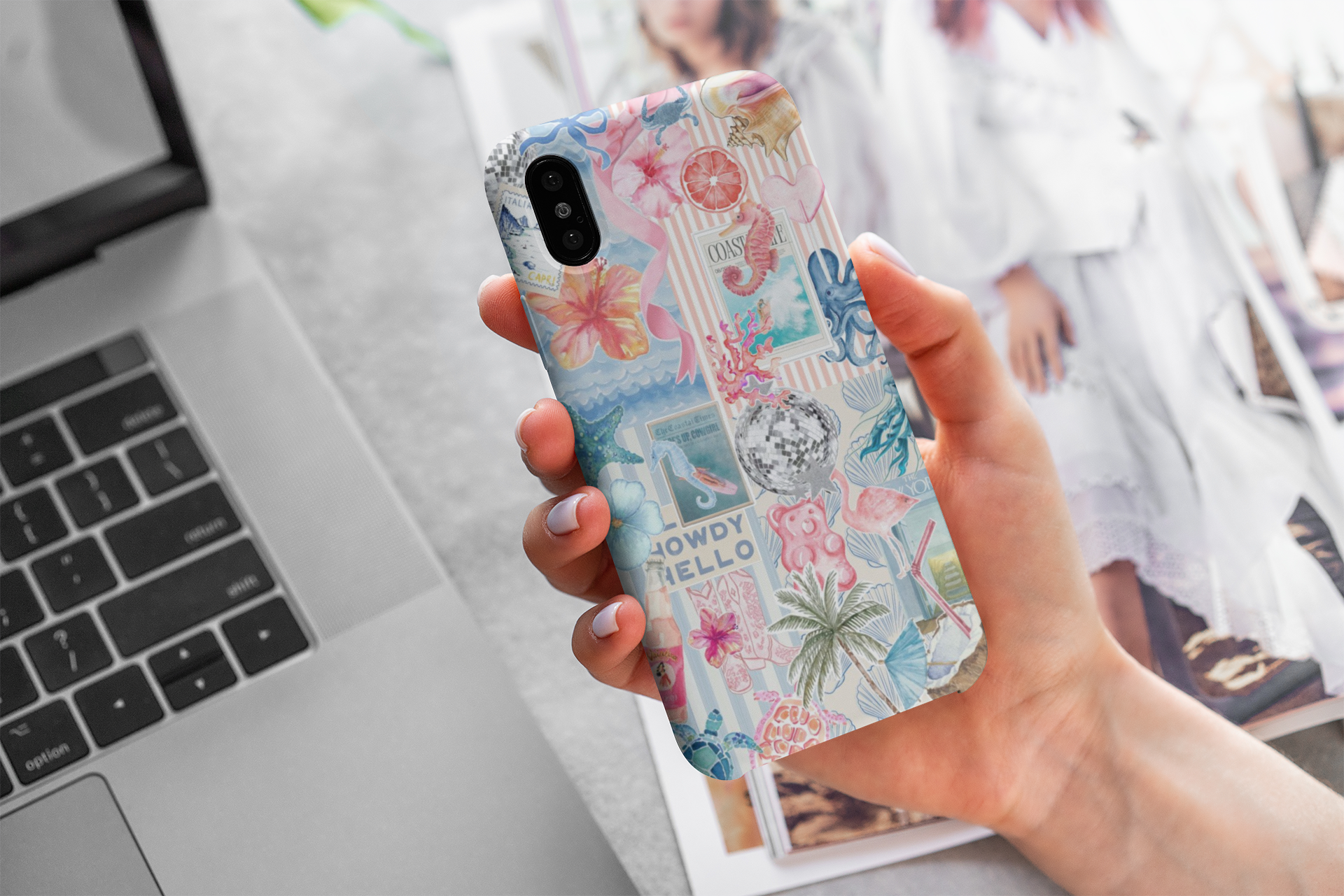 Bring the calm of the coast wherever you go with this soothing phone case, featuring a dreamy collage of beachside treasures in soft, ocean-inspired blues. From seashells and starfish to waves and driftwood textures, every detail captures the peaceful rhythm of the shoreline. Perfect for ocean lovers, beach dreamers, and anyone who feels most at home near the waves.