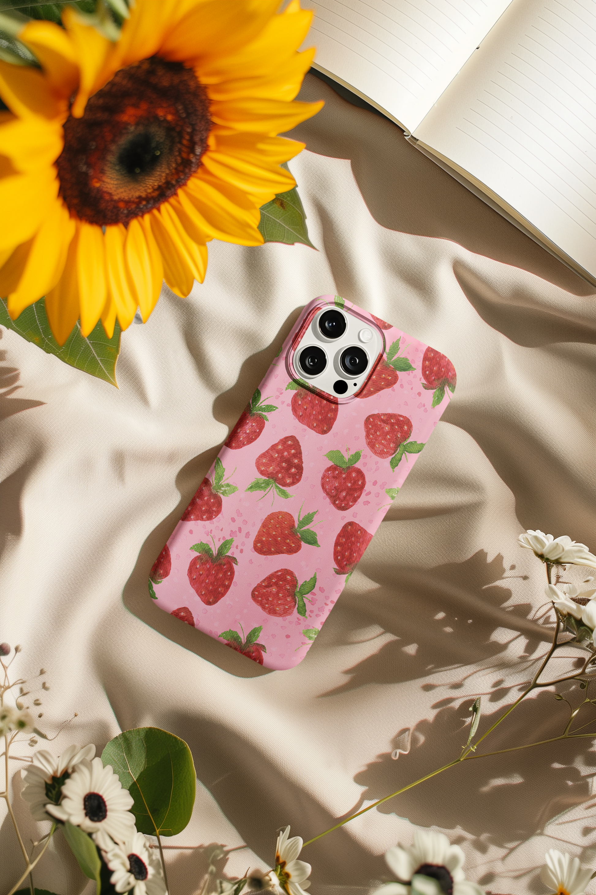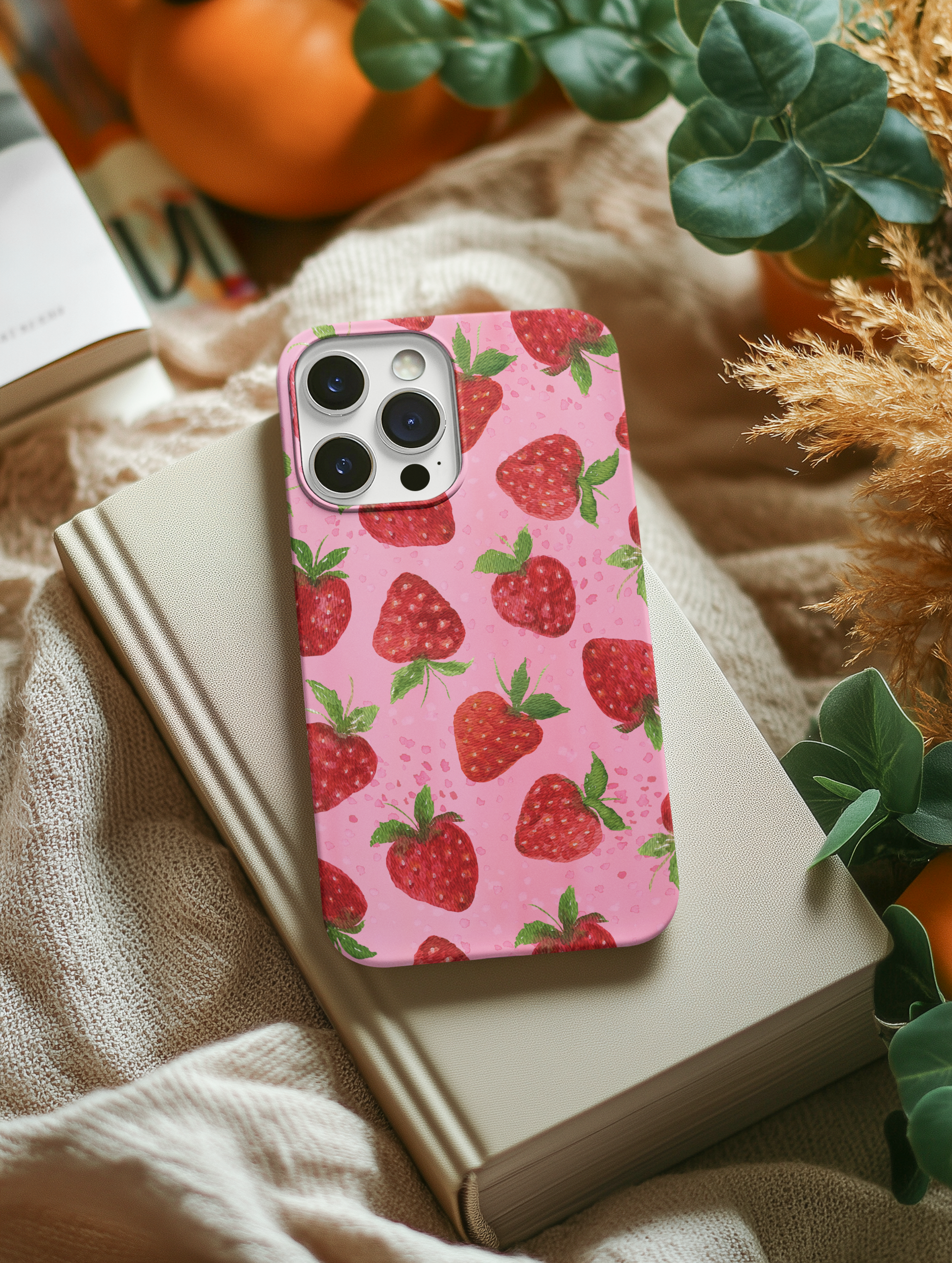 Bright, playful, and irresistibly charming this pink and red strawberry iPhone case is a little burst of joy in your everyday. Juicy red berries pop against a soft pink background, creating the perfect blend of sweetness and style. Whether you’re snapping photos, texting your besties, or just living your berry best life, this case keeps your phone protected while serving serious fruit-forward cuteness.