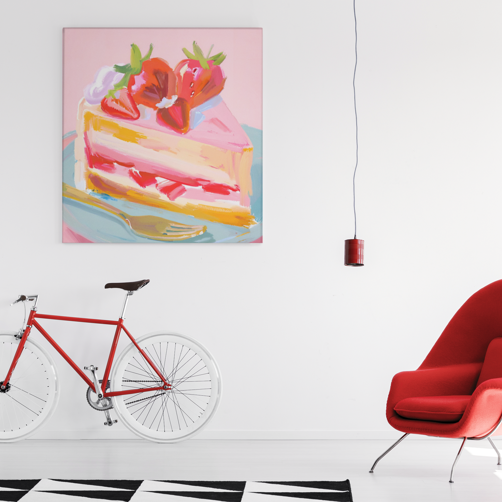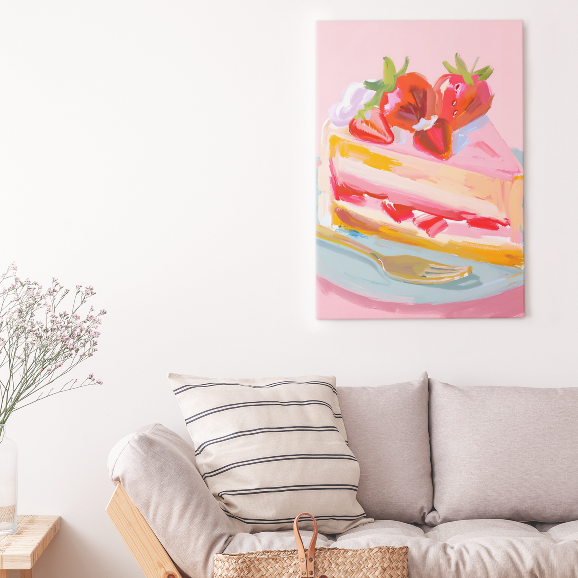 Indulge your senses with this Strawberry Cake Oil Painting, a delectable dream captured in rich, textured brushstrokes. This enchanting artwork features a tall, fluffy strawberry cake layered with swirls of whipped cream and crowned with juicy, glistening berries so sweet, it feels like it popped out of a fairytale bakery.