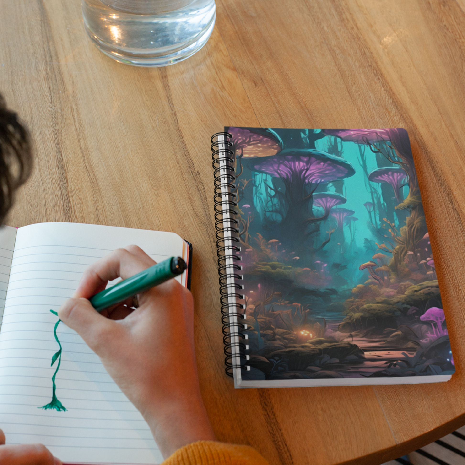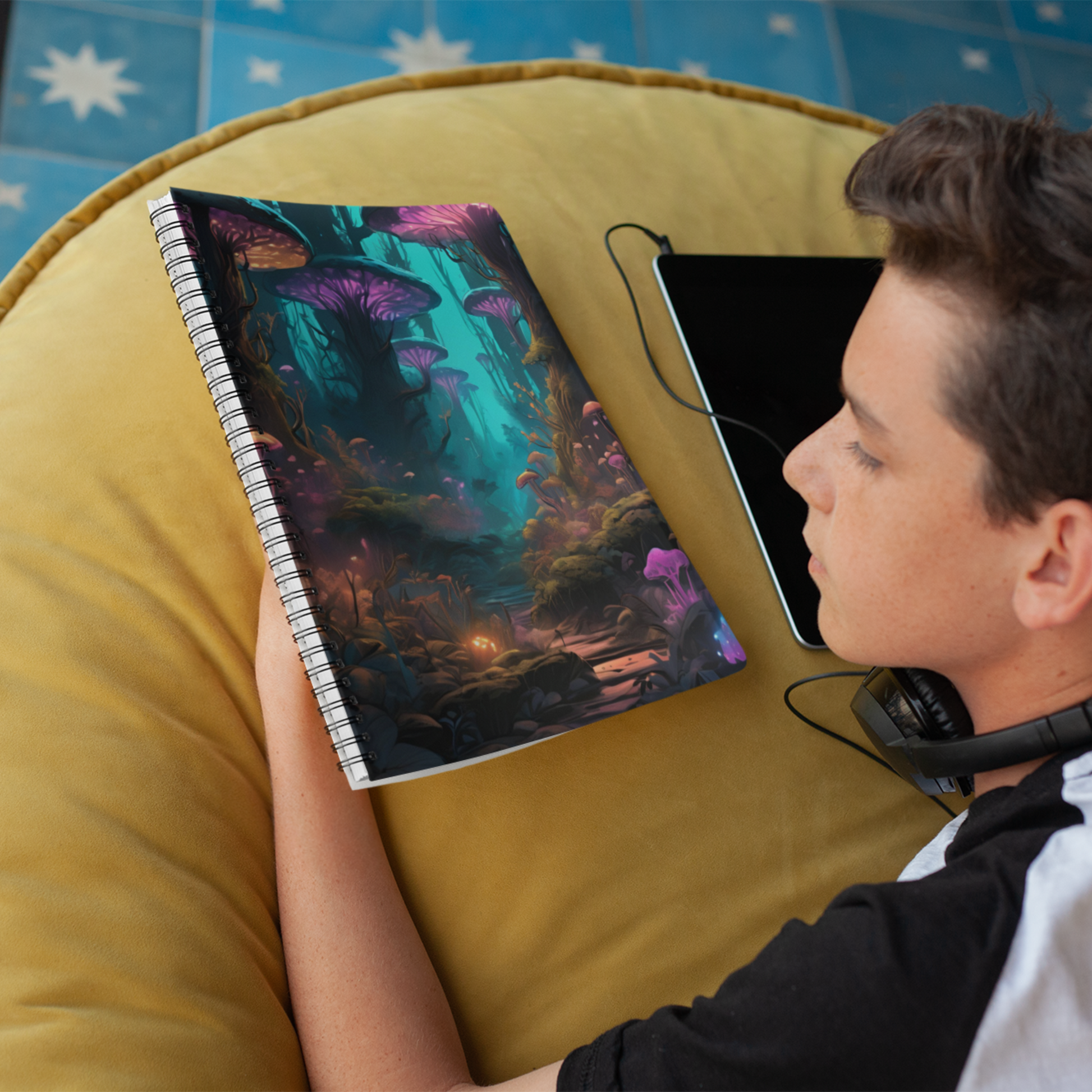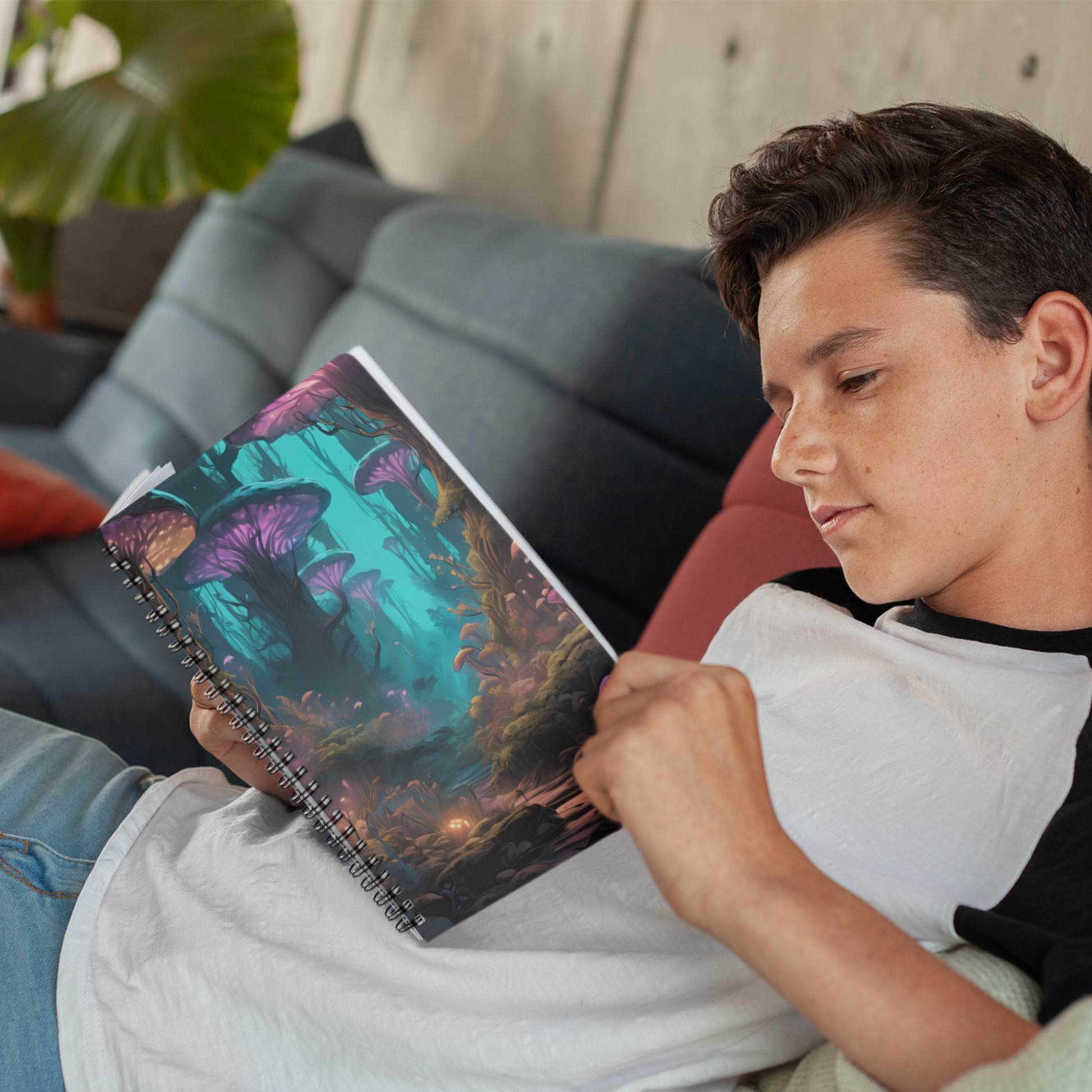 Unleash your creativity where bioluminescent dreams take root. The cover features an enchanted forest alive with glowing fungi, neon-tipped flora, and luminous blossoms that shimmer and glow like stardust. Whether you're sketching, journaling, or planning your next otherworldly adventure, this notebook is your portal to a world where nature meets the fantastical. With sturdy spiral binding and smooth, high-quality pages, it's as functional as it is mesmerizing.