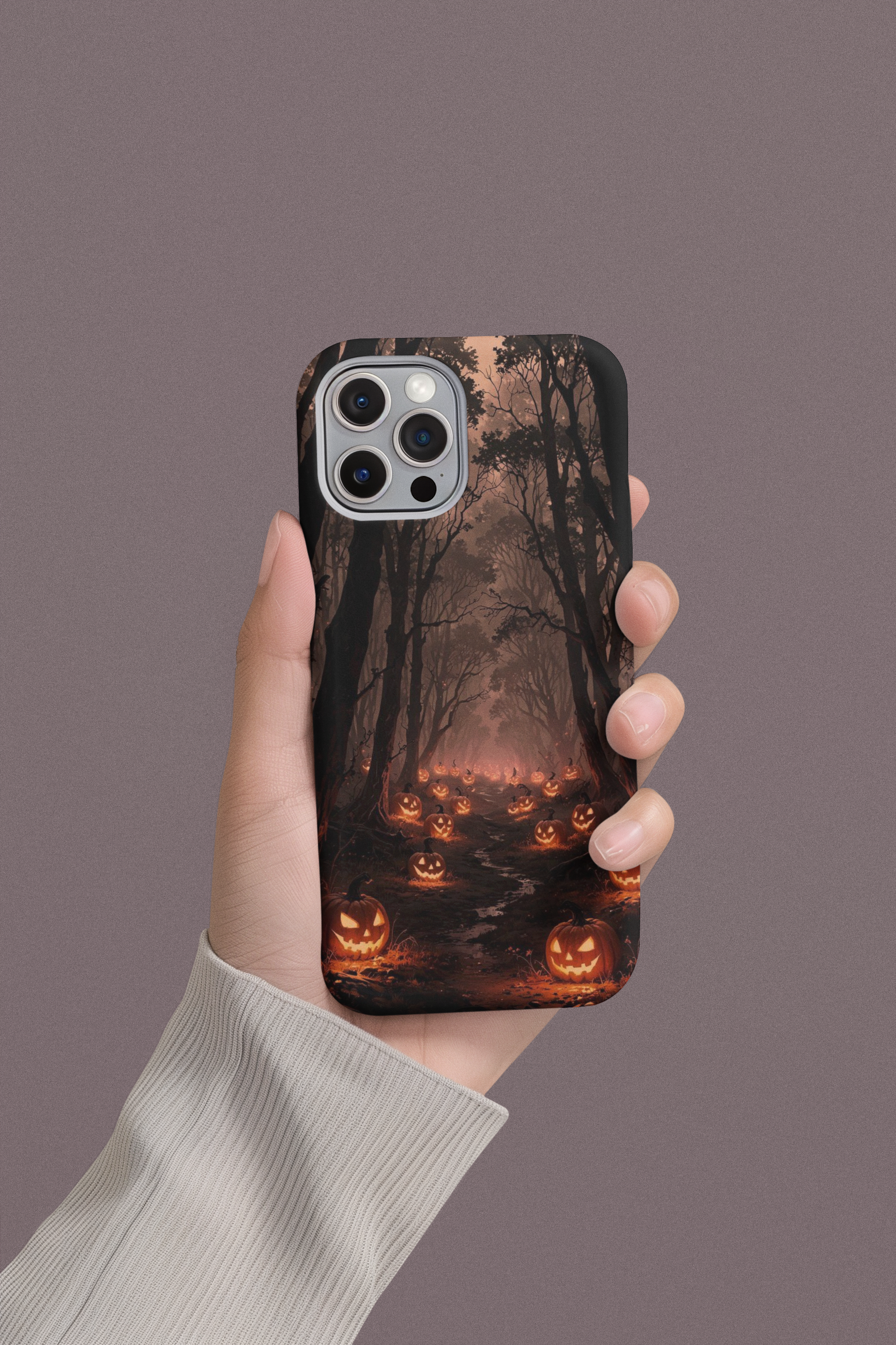 Venture into the shadows where flickering jack-o’-lanterns line a winding path through the forest, their glowing grins casting dancing light on fallen leaves. The deeper you go, the darker it gets until the trees whisper secrets and the night feels alive with mystery. It’s a place where autumn magic meets a haunting chill… if you dare to follow.