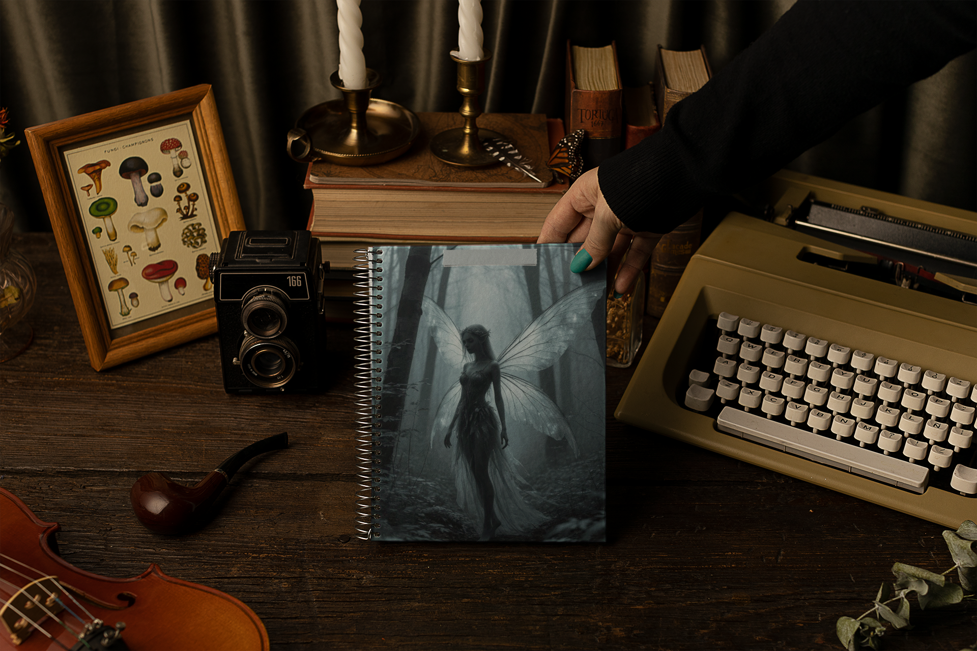 In the shadowed heart of the forest, where moonlight filters through tangled branches, a mysterious fairy lingers. Cloaked in shimmering shades of midnight blue and deep black, she moves like mist between the trees silent, watchful, and full of secrets. Her wings catch the faintest glow, like stars trapped in shadow, and her presence feels like a spell woven from twilight and ancient earth. A guardian of the hidden and the forgotten, she is the forest’s quiet whisper in the dark.