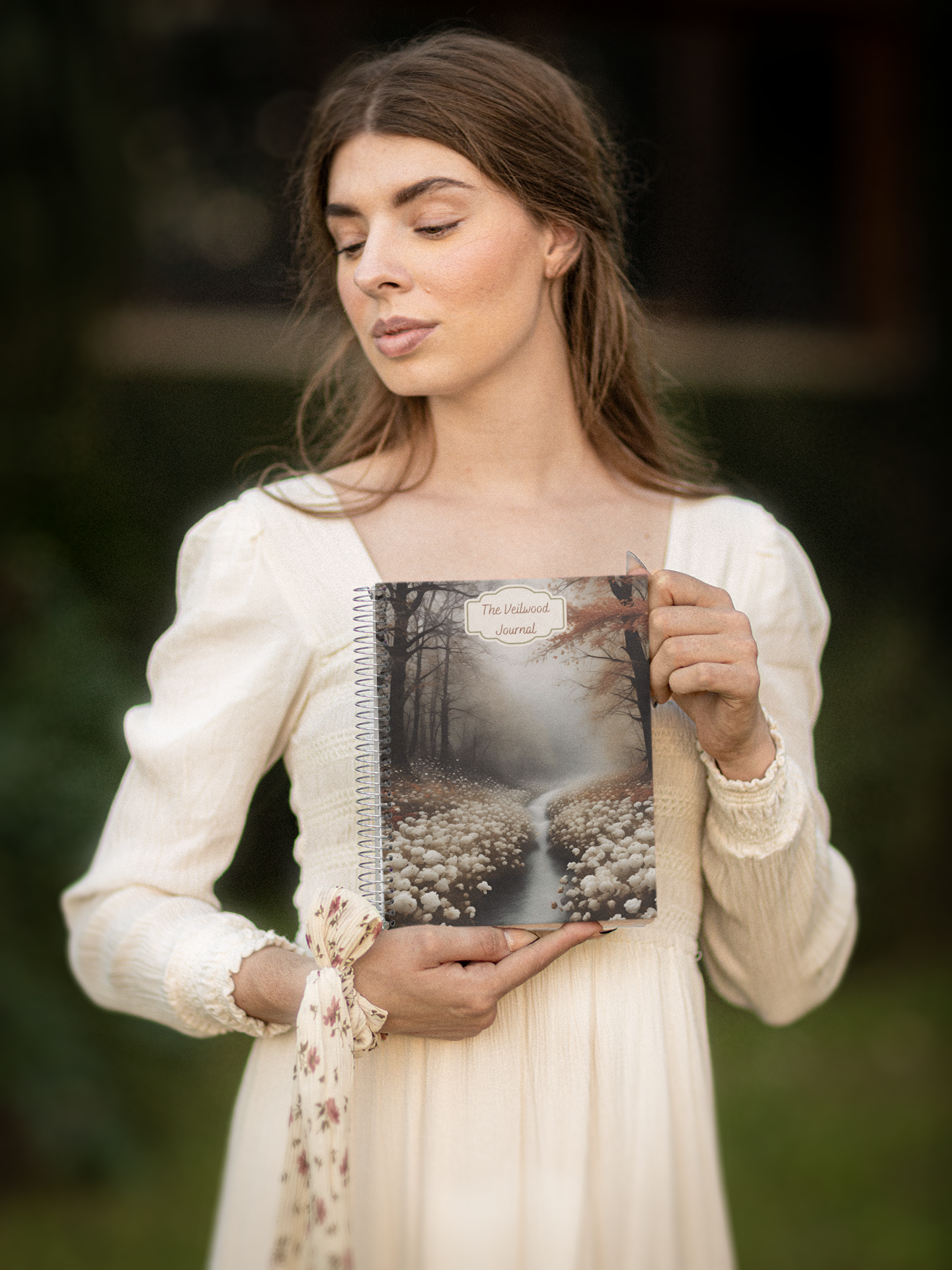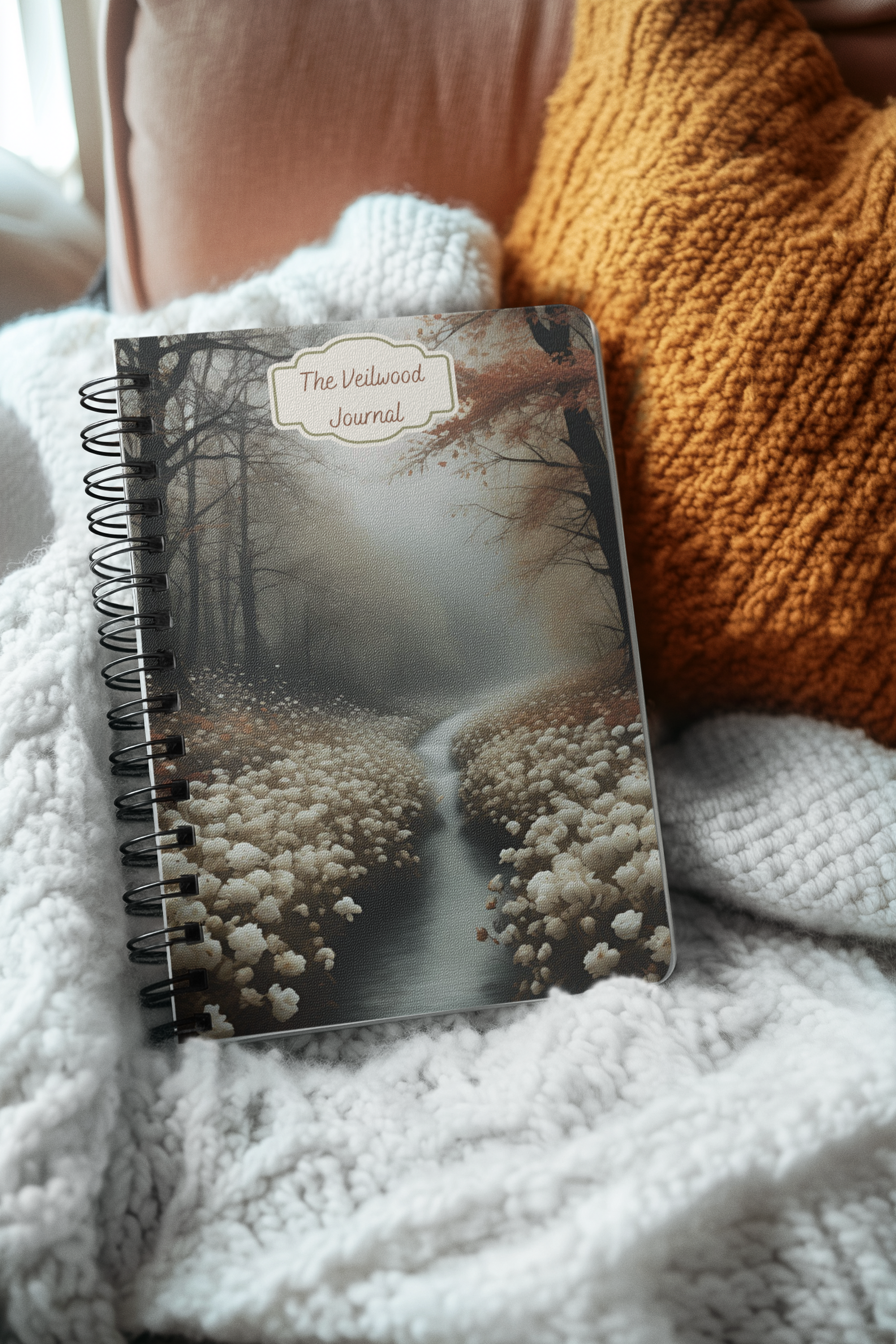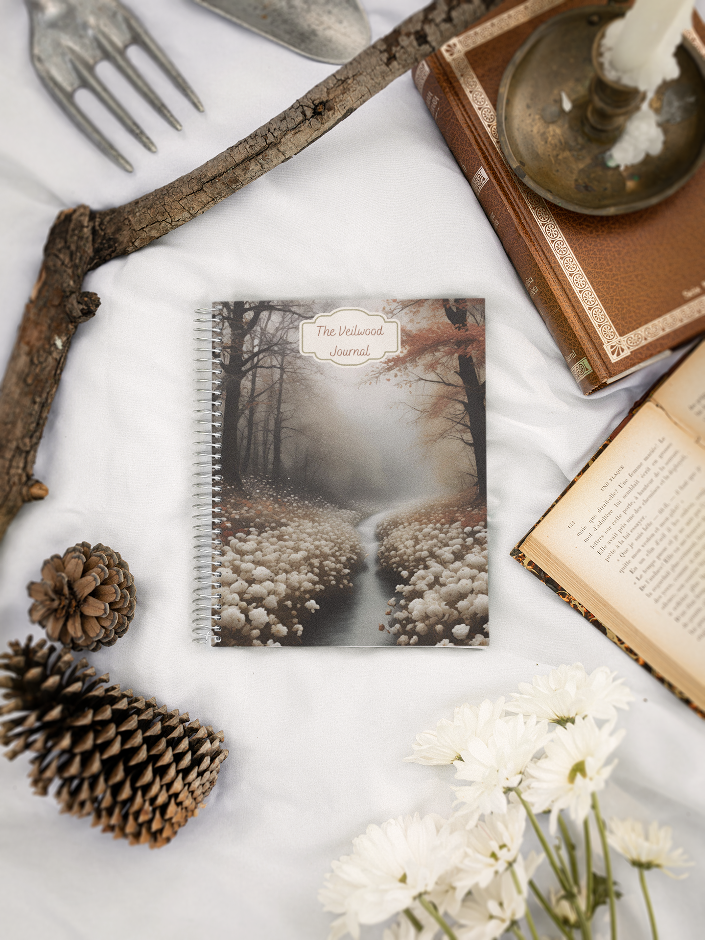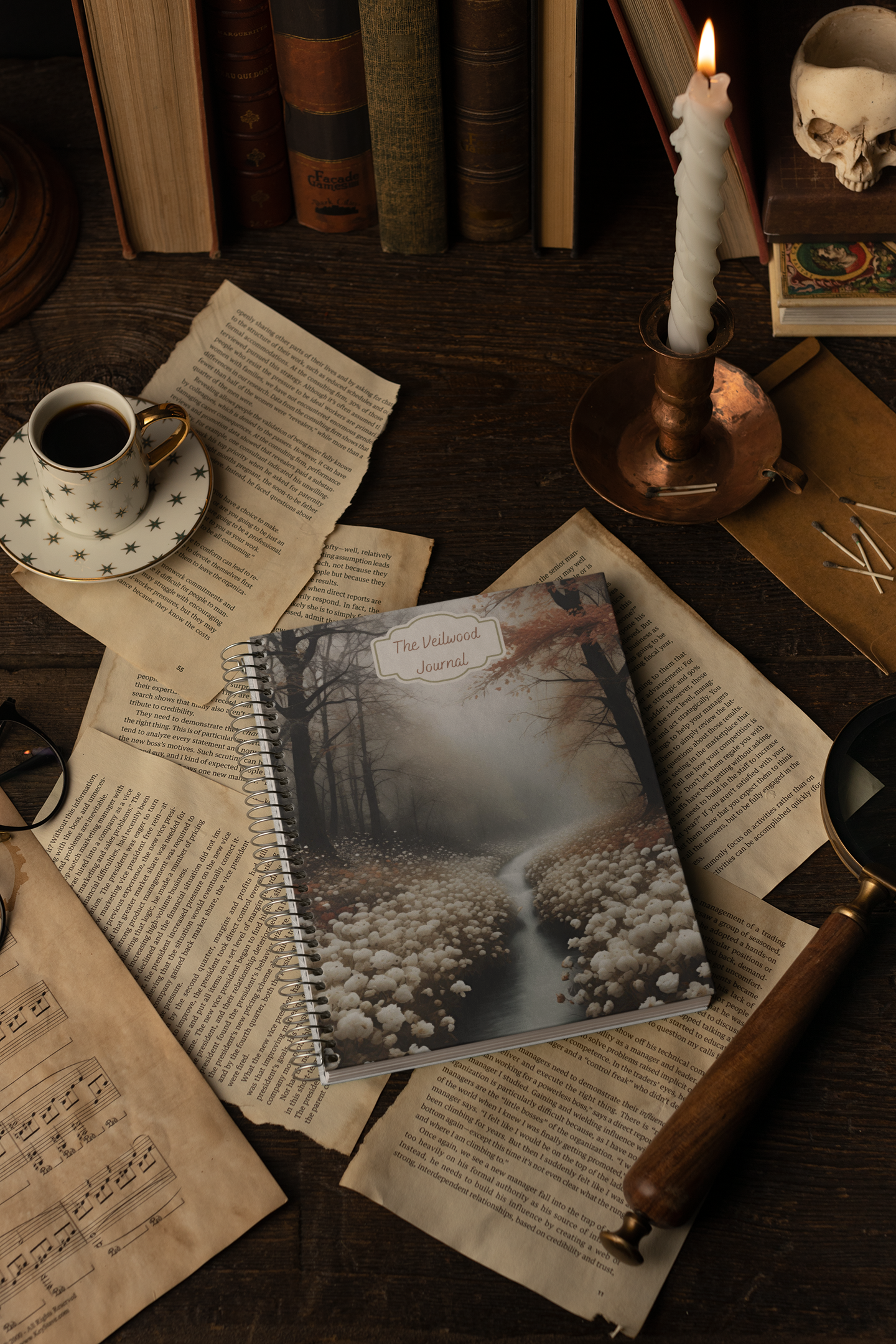 Step quietly into the Veilwood, where thick fog weaves between ancient, amber leaved trees and the air hums with forgotten spells. This mysterious dreambook is wrapped in autumn’s hush, its pages waiting to hold whispered intentions, moonlit musings, or the secrets only the forest knows. Whether you're casting quiet thoughts or recording haunted dreams, The Veilwood Journal is your sacred place beneath the rustling canopy and veil of mist. A spellbinding companion for witches, wanderers, and lovers of the in-between.