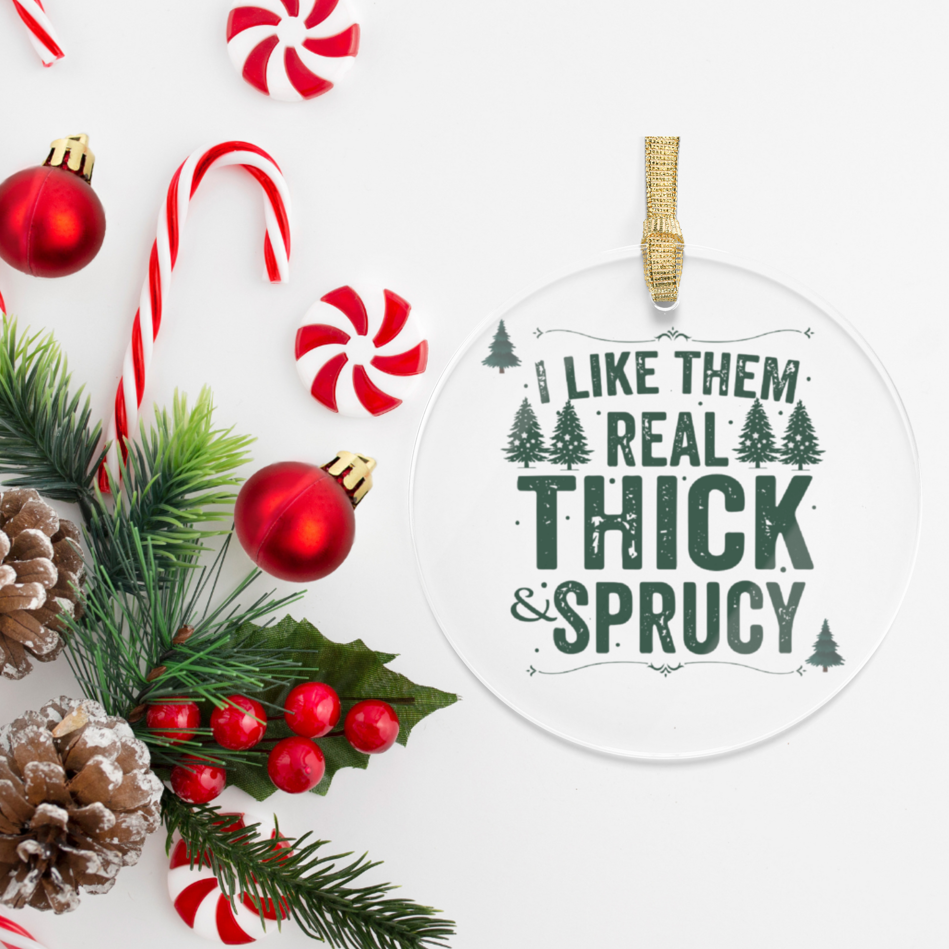 For those who like their trees like their holiday spirit "real thick and a little extra" this ornament is here to sleigh. With a wink and a chuckle, the bold saying shines through the clear acrylic like tinsel with attitude. Whether you’re team real tree or just love a good pine pun, this ornament is the perfect sprinkle of sass for your festive décor. Because let’s face it sprucy is the new sexy!
