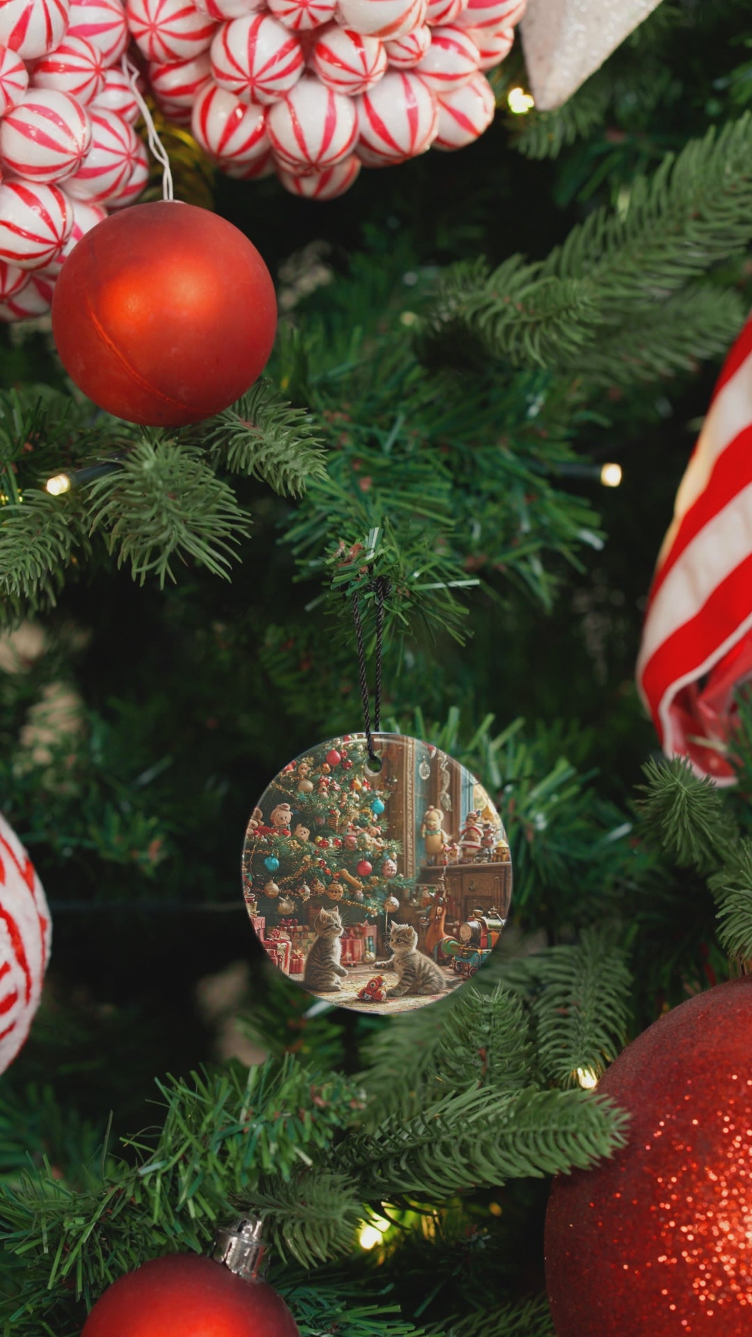 These two adorable kittens have found the coziest spot of all right beside the Christmas tree, bathed in the soft glow of twinkling lights. With curious eyes and playful paws, surrounded ribbons and ornaments. This heart melting acrylic design captures the joy, mischief, and magic of the season purr-fect for cat lovers and Christmas dreamers alike.