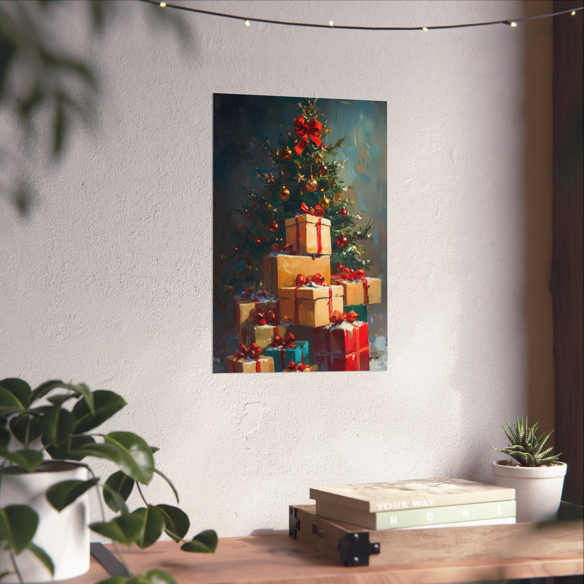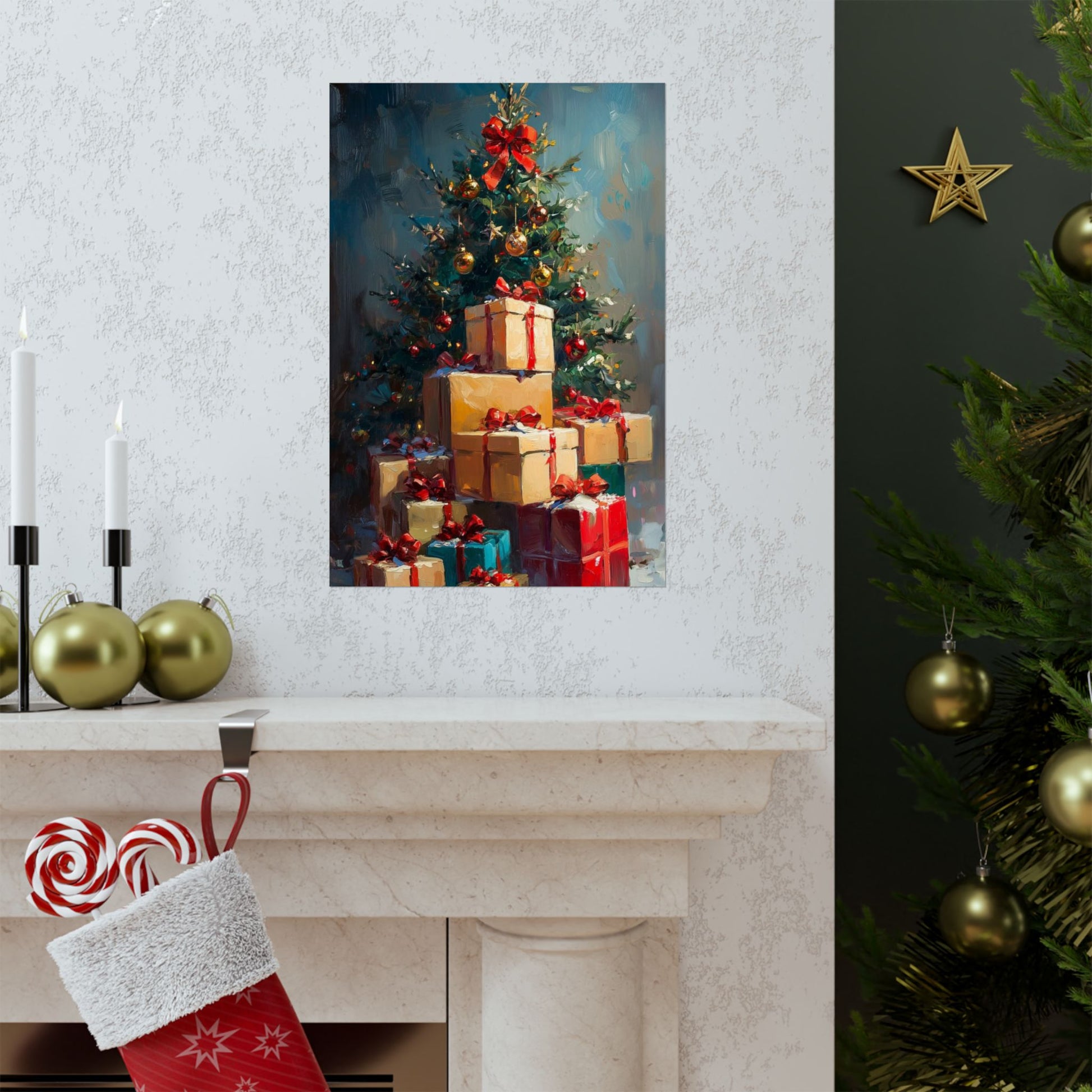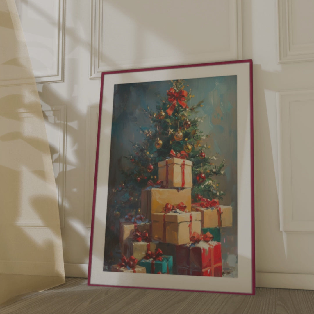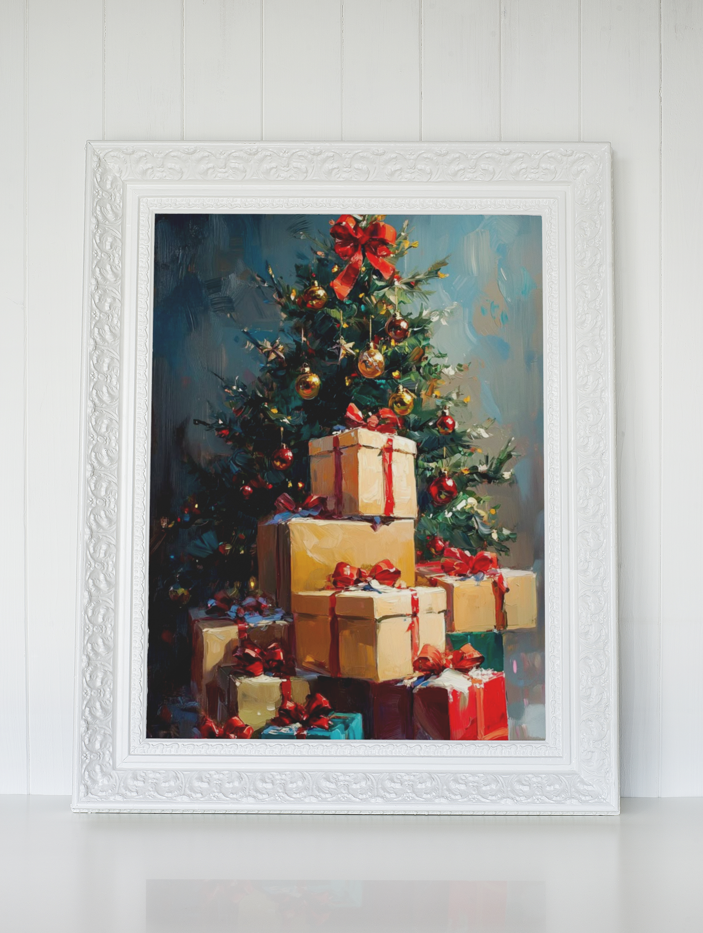 This enchanting oil painting captures the heart of the holidays a beautifully adorned Christmas tree glowing softly in the warmth of golden lights. Tucked beneath its graceful branches, thoughtfully wrapped presents rest in a quiet moment of anticipation and joy. With rich brushstrokes and nostalgic charm, this piece evokes the wonder of childhood mornings, the scent of pine, and the magic that lingers just before the unwrapping begins. A classic scene to cherish year after year.